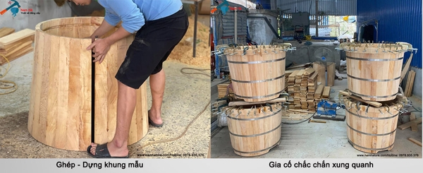 Đây là một quá trình vô cùng quan trọng đòi hỏi sự khéo léo, cẩn thận của người thợ nếu không lắp ghép chuẩn và đúng giai đoạn khi hoàn thiện rất dễ xảy ra hiện tượng rò rỉ. Tùy vào kiểu dáng khác nhau của Bồn gỗ mà chúng tôi sẽ lắp ghép theo các cách khác nhau. Thông thường được áp dụng chủ yếu vẫn là phương pháp "ghép âm dương" tiên tiến nhất hiện nay.