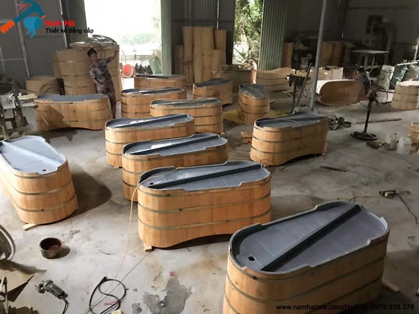 bồn tắm gỗ tại xưởng sản xuất