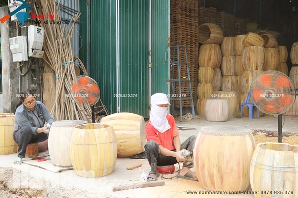 - - Cuối cùng khi đã đóng mặt trống xong chỉ cần trang trí cho sản phẩm bằng những màu sơn hay những họa tiết hoa văn xung quanh sản phẩm nữa thôi. Vậy là có thể sử dụng và đưa ra thị trường sản phẩm Trống gỗ giá rẻ rồi đó.