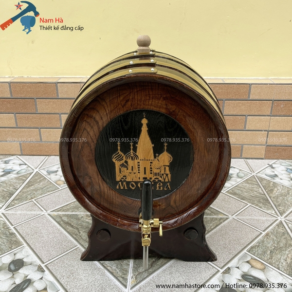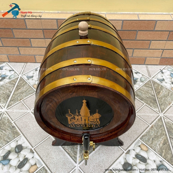 Thùng gỗ sồi 100 Lít giả cổ khắc mặt theo cầu