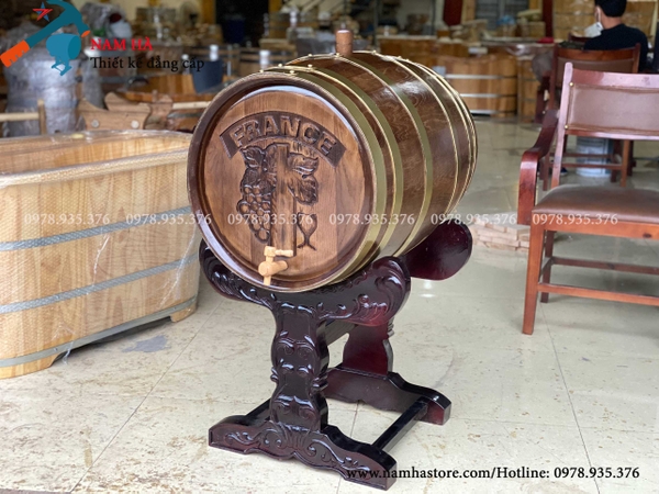 Hình ảnh Thùng ngâm rượu gỗ sồi 100Lit chân giá trạm khắc