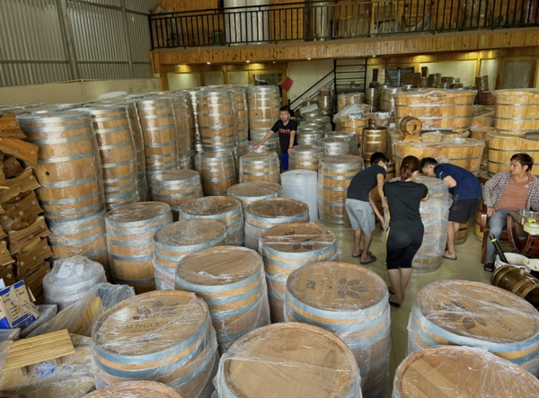 Gian hàng trưng bày và đóng gói Thùng gỗ sồi ngâm rượu