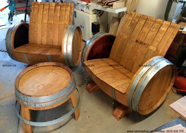 Thùng sồi làm ghế ngồi