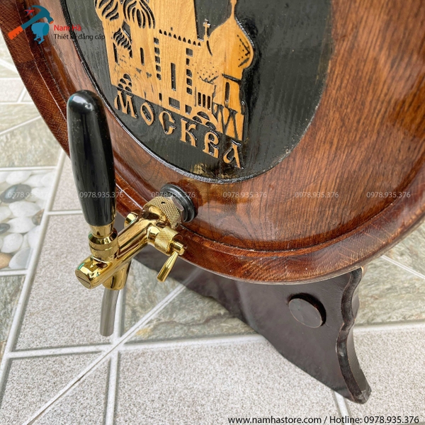 Phần mặt của thùng sẽ được khoan và lắp đặt thêm một chiếc vòi crom sáng bóng, tăng thêm phần đẹp mắt và độ thuận tiện khi cần lấy rượu ra khỏi thùng