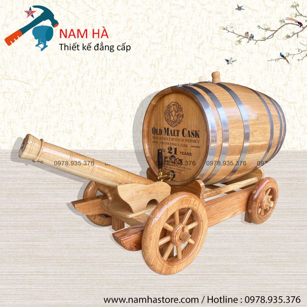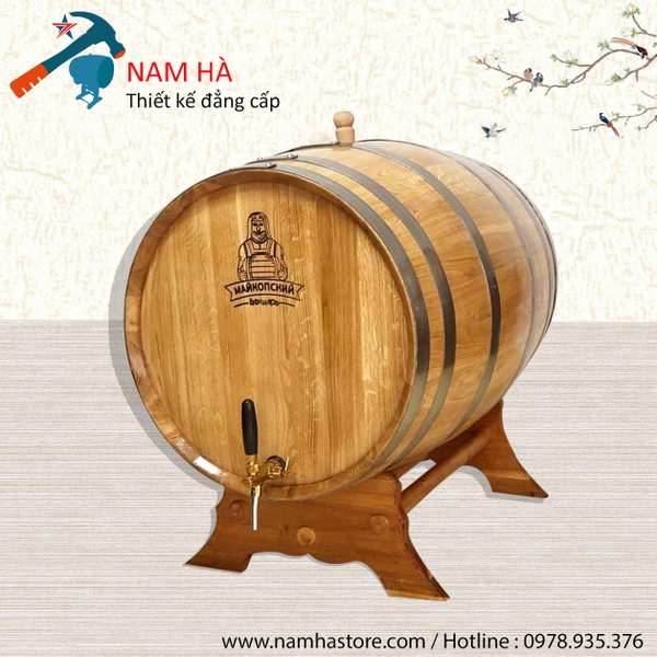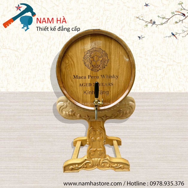 thùng rượu gỗ sồi có chân giá chạm khắc tinh tế