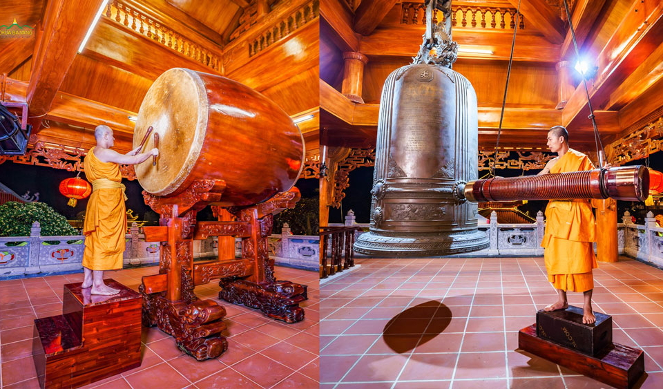 Phối hợp cùng chuông, mõ tạo nên pháp âm hài hòa, an lạc.