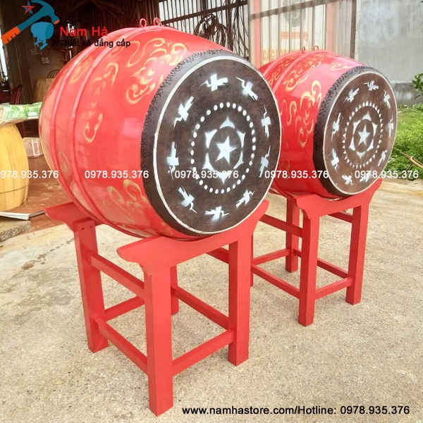 - Quả trống: có kiểu dáng đứng bụng bầu và 2 mặt mặt bịp kín bằng da trâu chắc chắn và tỉ mỉ. Bên ngoài thân trống sẽ được trang trí bằng những lớp sơn loại 1 giúp cho sản phẩm luôn mới và bắt mắt.